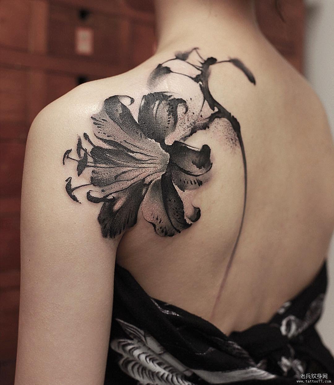 黑灰花纹身图案
