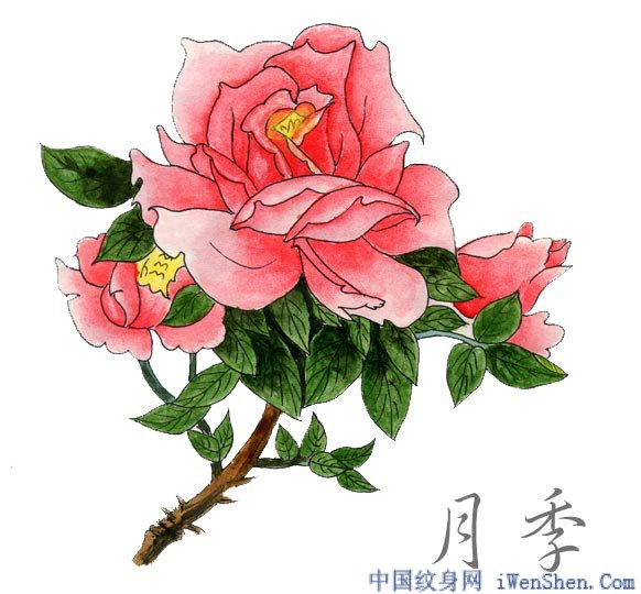 月季花纹身图案