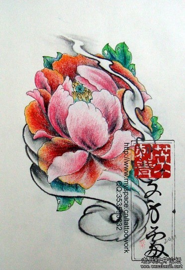 武汉纹身店为你提供提款彩色牡丹纹身图案纹身图片