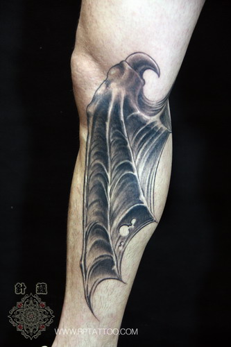 武汉最好的纹身店:腿部欧美恶魔翅膀纹身图案图片