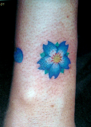 武汉刺青店:脚部蓝色樱花纹身图案图片