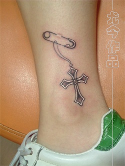 武汉最好的纹身店:脚踝别针十字架纹身图案图片