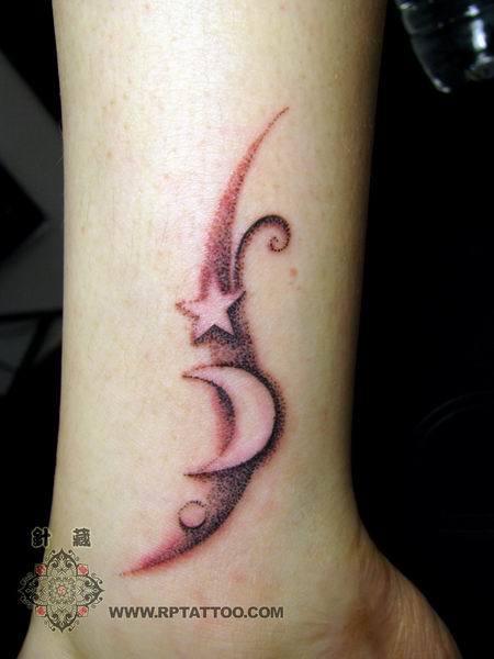 女人纹身图案大全:一款适合女人脚踝纹身的月亮星星纹身图案图片