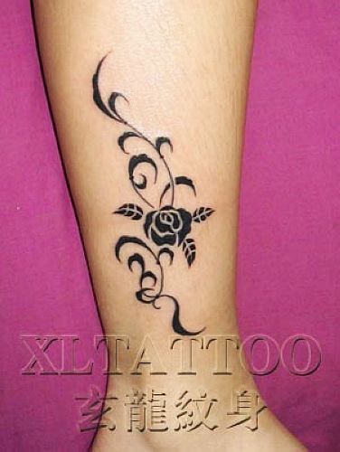 女人脚踝纹身图案:一款适合女人脚踝的图腾玫瑰纹身图案图片