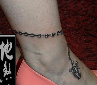 女孩子腿部精美时尚的脚链纹身图案