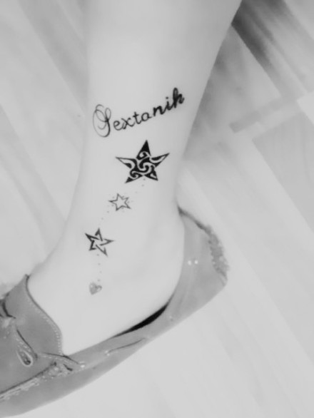 女生腿部五角星纹身图案 女生腿部五角星纹身图案