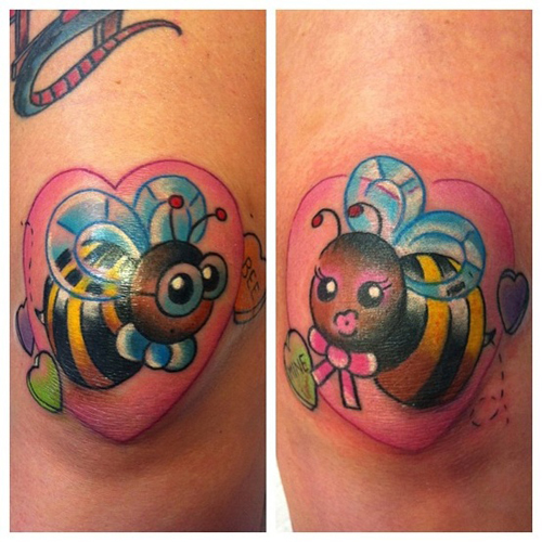 女生膝盖骨可爱的小蜜蜂纹身图案