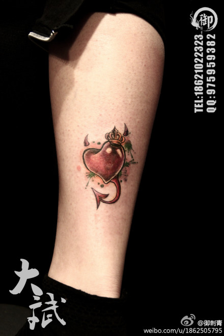 女生腿部好看时尚的爱心与皇冠纹身图案