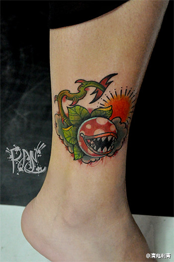 女生腿部一款经典的食人花纹身图案