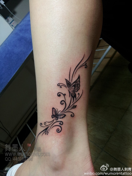 女生腿部唯美潮流的藤蔓纹身图案