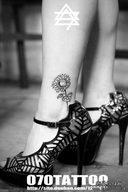 女生腿部小巧流行的向日葵花纹身图案