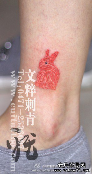女生腿部一款小巧的指纹兔子纹身图案