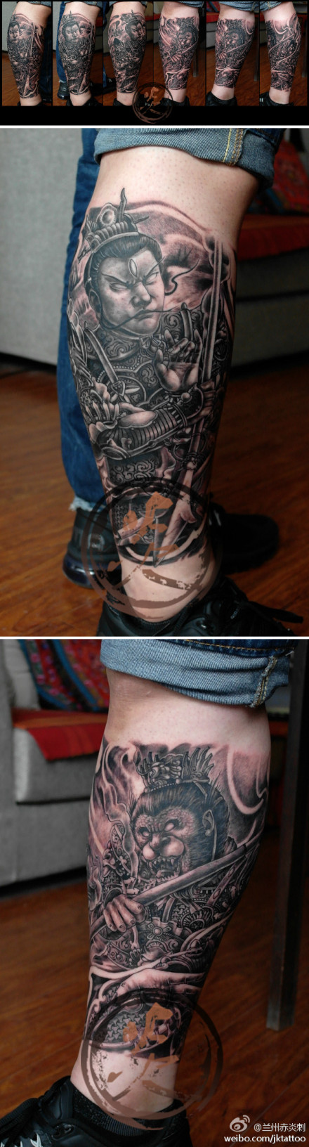 腿部霸气超酷的二郎神与孙悟空纹身图案