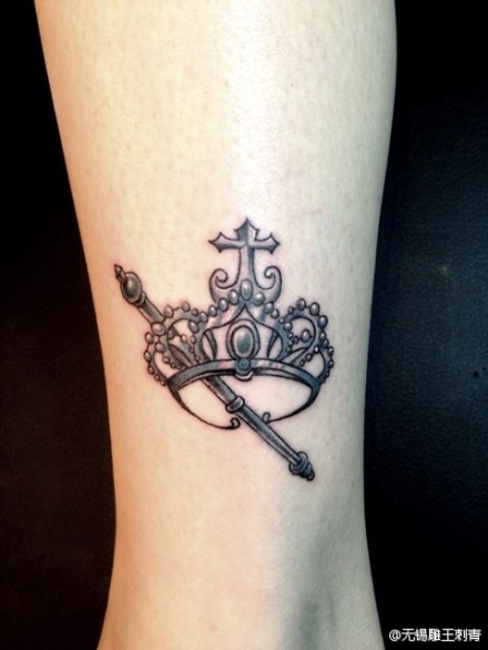 女生腿部时尚潮流的皇冠权杖纹身图案