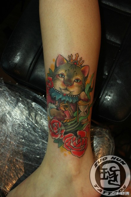 女孩子腿部可爱潮流的猫咪纹身图案