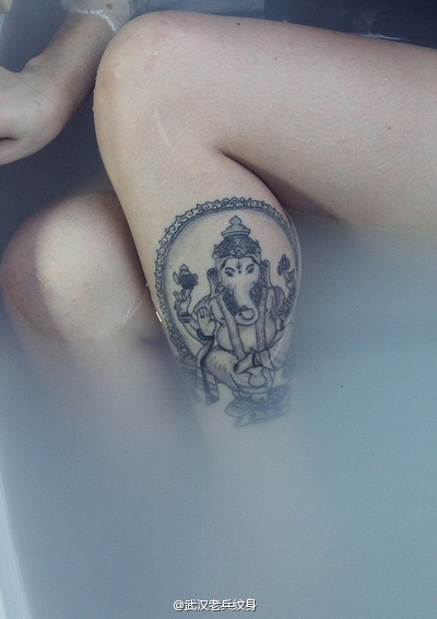 一款腿部象神纹身图案由武汉最好的纹身网提供