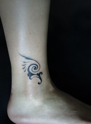黑灰心脏小鸟腿部纹身图案