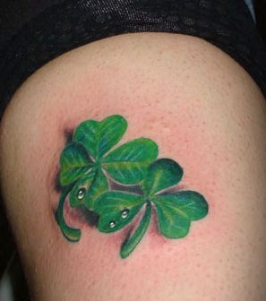 腿部纹身图案:腿部彩色三叶草四叶草纹身图案纹身图片