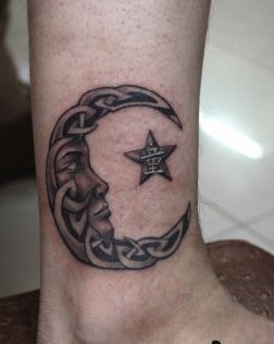 腿部纹身图案:腿部月亮星星五角星纹身图案纹身图片