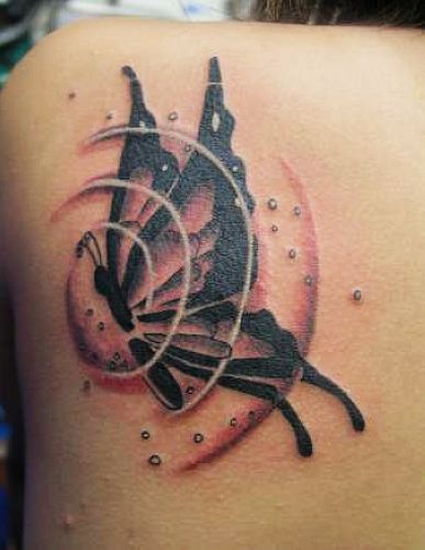 湖北宜昌刺青店:后背蝴蝶水珠纹身图案图片