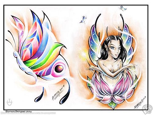 湖北仙桃刺青店:七彩蝴蝶精灵纹身(tattoo)图案图片