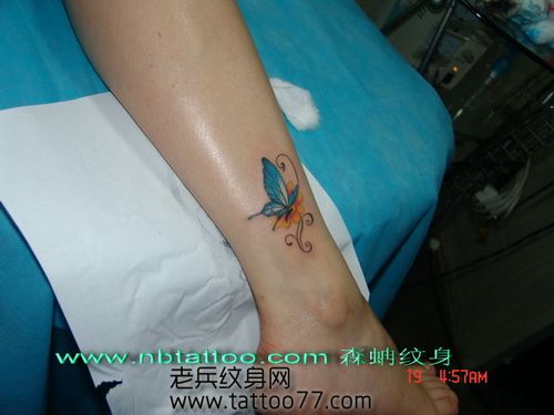 脚背彩色蝴蝶纹身图案