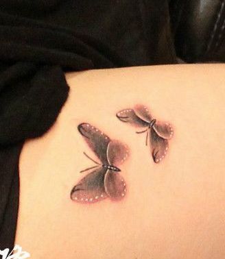 女孩子腿部小巧的一款黑白蝴蝶纹身图案