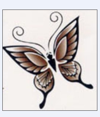 女性背部彩色蝴蝶纹身图案由武汉纹身店提供