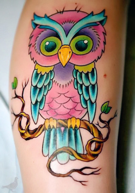 一款欧美风格可爱的猫头鹰纹身图案