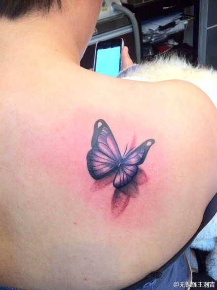 女生肩背唯美漂亮的蝴蝶纹身图案