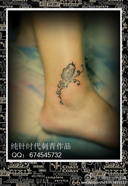 女生脚踝处小巧唯美的蝴蝶纹身图案