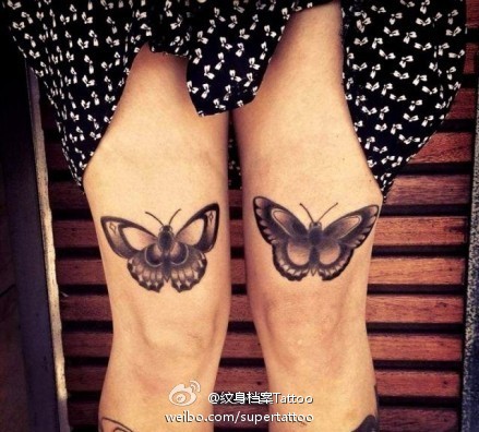 女生腿部潮流唯美的黑灰蝴蝶纹身图案