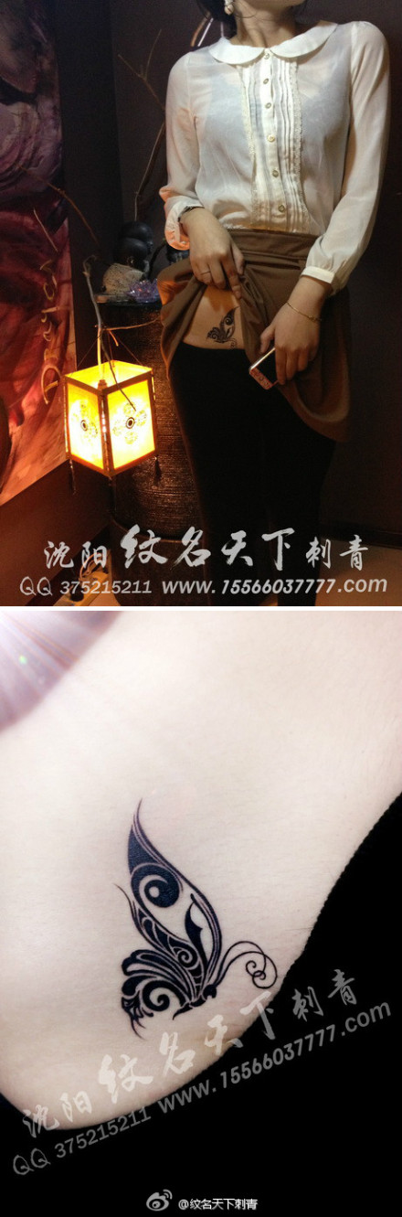 美女腹部唯美好看的图腾蝴蝶纹身图案
