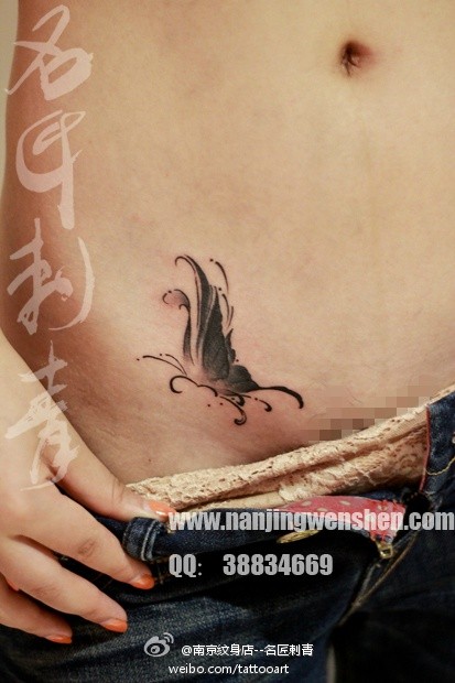 美女腹部唯美潮流的小蝴蝶纹身图案