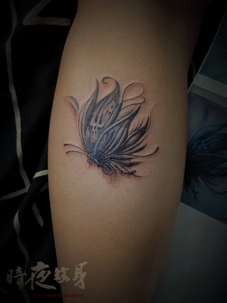 蝴蝶纹身图案:手臂素描黑白蝴蝶纹身图案图片