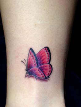 蝴蝶纹身图案:脚踝彩色蝴蝶纹身图案图片