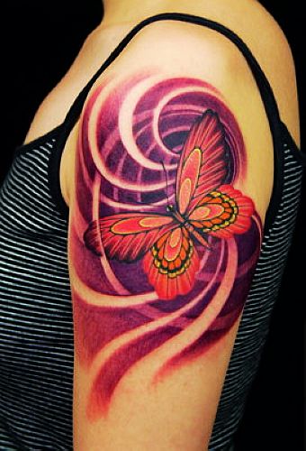 大臂刺青纹身图案:大臂蝴蝶刺青纹身图案图片