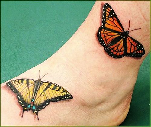 武汉最好的纹身店:脚部蝴蝶纹身图案图片