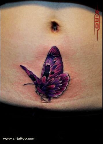 腹部文身图案大全:腹部蝴蝶纹身图案大全