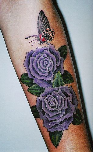 湖北孝感文身店:一组漂亮的蝴蝶玫瑰纹身图案图片