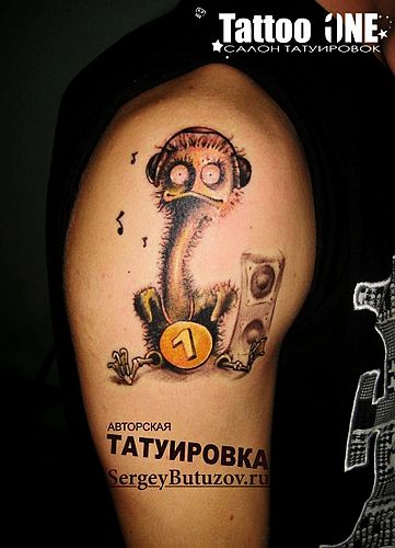 武汉专业纹身店:大臂卡通鸡纹身图案图片