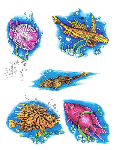 湖北宜昌纹身店:卡通彩色鱼纹身图案图片大全