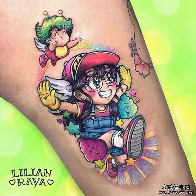 脚踝卡通美少女彩色纹身作品