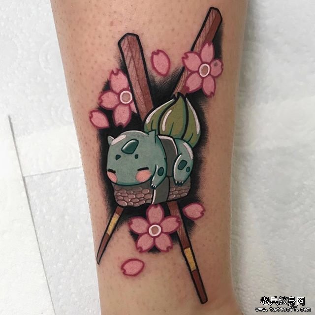 彩色卡通妙蛙种子纹身图案