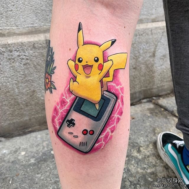 卡通皮卡丘游戏机纹身图案