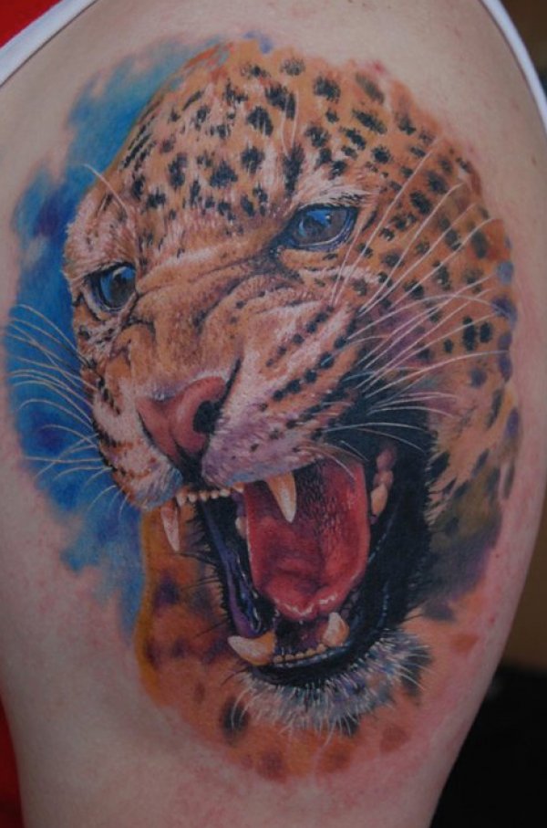 武汉哪里纹身最好:由武汉老兵纹身提供的一张很霸气的豹头纹身图