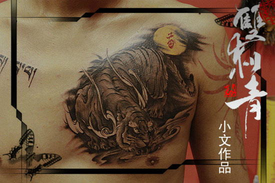 霸气的男人胸前下山虎纹身图案