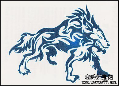 一款凶狠超酷的图腾狼纹身图案