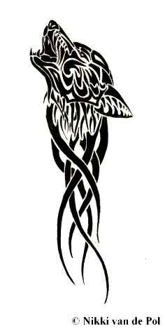 很酷的一款图腾狼头纹身图案