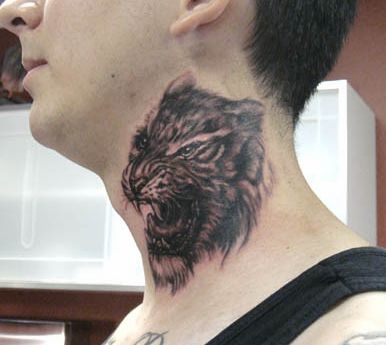 一款霸气帅气的手臂彩色老虎虎头纹身图案纹身图片